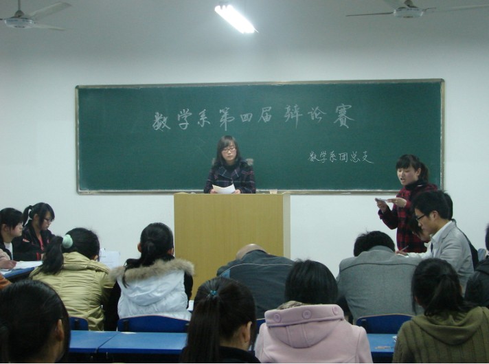 2011年3月13日星期日晚上七点数学系于教学楼2405举行了数学系第四届辩论赛初赛,党支部书记刘洋老师、学生会成员及相关人员参加了本次辩论赛。