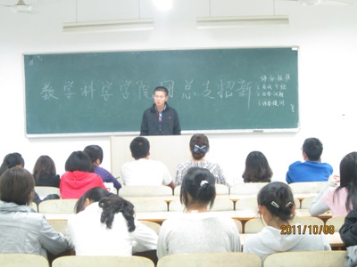 经过两天的面试,招新工作圆满结束。2011级新生的加入给学生会注入了新的血液和新的活力。在他们积极的表现中,更是让人看到了数学学院新一代学子们的风采。希望学生会新成员工作认真负责,在工作中更好地提高自己的能力,大家一起努力,使数学学院再创辉煌。