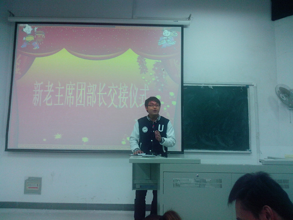 10月18日晚,数学科学学院团总支学生会在实阶四召开了本年度第一次大会,数学学院团总支副书记刘洋老师、学生会主席丁康俊和朱皓然出席了大会,大会还邀请了团总支学生会前主席李伟、胡赛,以及上届学生会各部部长到场;与会的还有本届学生会全体成员。 大会举行了团总支学生会工作交接仪式,刘洋老师为两位前主席颁发了荣誉证书;李伟和胡赛应邀发表讲话,简要总结了过去的经验,表达了对新一届学生会的期许。随后学生会主席朱皓然和丁康俊分别讲话,对新一届学生会成员提出要求,同时也表达了良好的祝愿和期盼。最后刘洋老师表达了对前任学生会干部们的肯定和感谢,同时对新一届团总支学生会寄予了厚望。 本次大会的圆满结束,标志着本学年数学学院团总支学生会的交接工作完满完成,相信新一届的团总支学生会能不负众望,认真工作,扛起数学学院大旗。