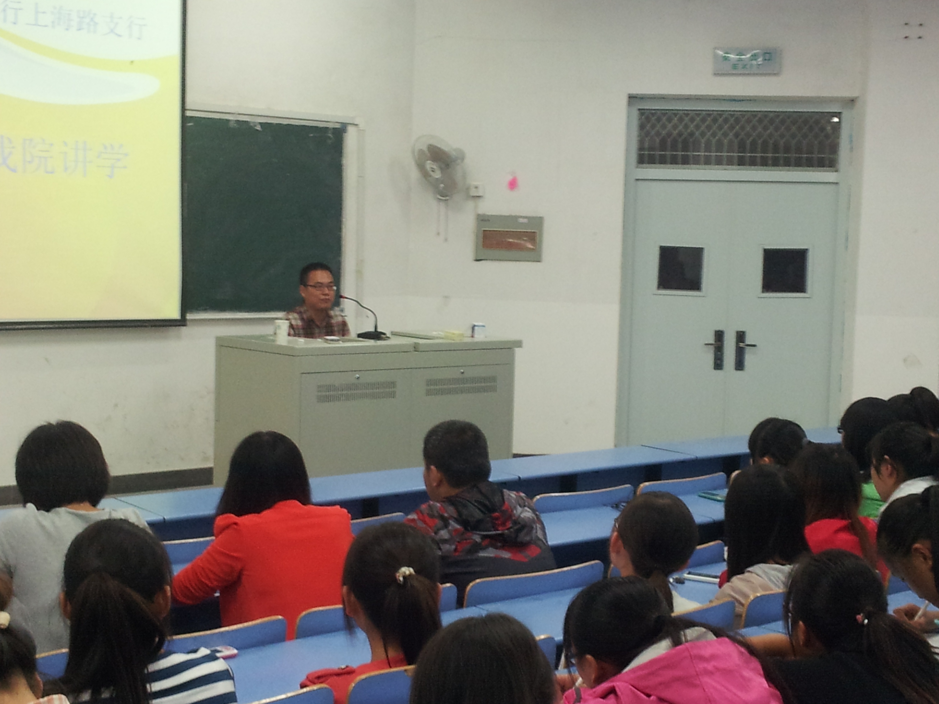 朱行长首先从银行的起源、我国银行的分类和职能等方面剖析了我国银行业发展的现状,然后结合我国改革开放以来的经济发展成就,分析了银行在其中所发挥的作用,最后从自己的成长历程以及实际工作中的经验和体会出发,给同学们在大学学习与生活、未来职业规划等方面提出了一些意见和建议。