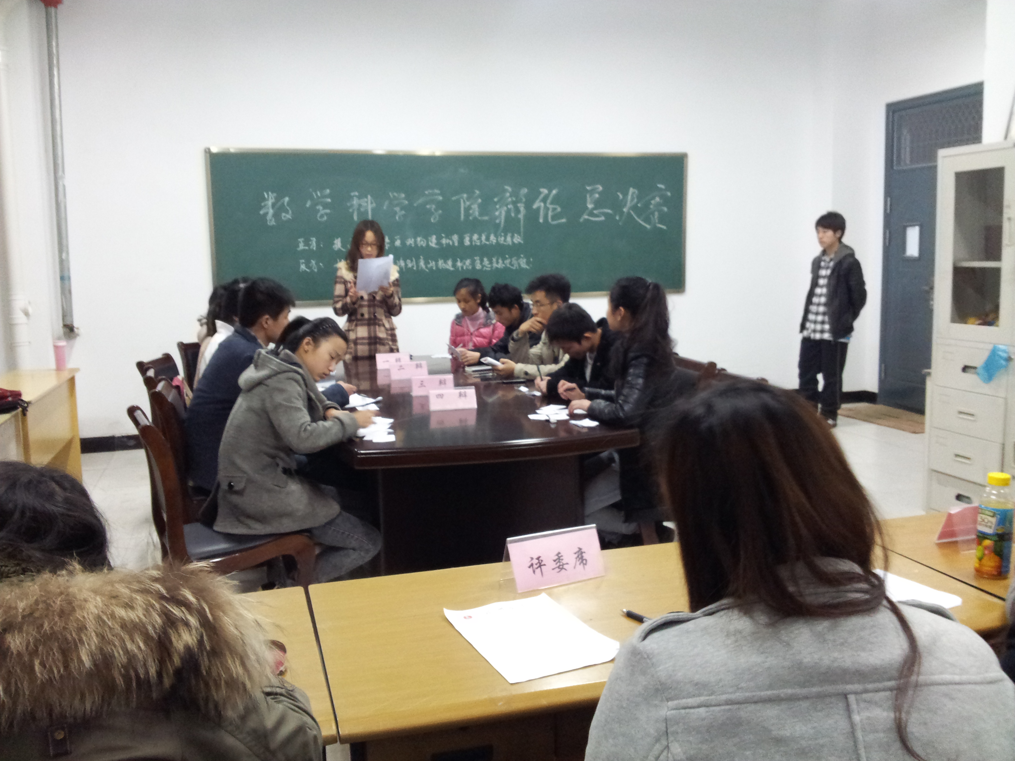 为了迎接“蔚然杯”辩论赛的到来,数学科学学院在三月初就着手进行人员选拔。3月23日,在数学学院会议室进行了辩论赛决赛。