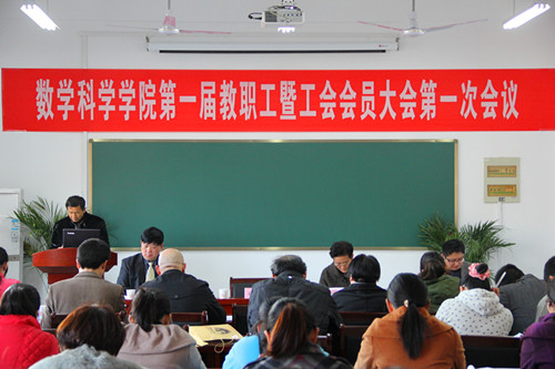金沙威尼斯欢乐人城党委副书记、校长许志才同志对数学学院一届一次教职工暨工会会员大会的召开表示祝贺。许志才指出,升本以来,数学学院在党政班子的带领下,各方面都取得了可喜成绩,并希望全体教职员工,同心同德,努力奋斗,以优异的成绩迎接教育部本科教学工作合格评估。