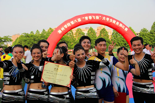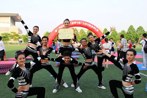 一袭黑色的衣服,浓妆下难掩的妖艳,数学学院代表队一出场就让人赞叹不已。开场时的高难度姿势,比赛中熟练的展示,个个选手之间默契配合,都十分精彩。彰显青春的舞步,凸显活力的动态,数学学院的健美操表演诠释了健美操运动的激情与张扬。优异的表演,赢得了现场观众的阵阵掌声,也赢得了评委们的青睐。最终,数学学院以高分成绩获得了此次大赛的二等奖。