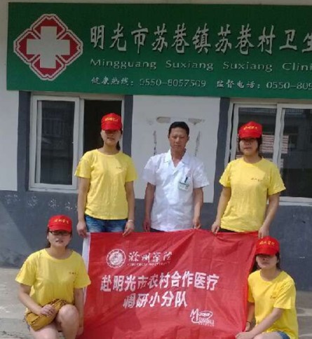 小分队赴明光市苏巷镇的农村医疗合点进行了调查,与医生交谈关于农村医疗合作的问题,并到了镇上的罗郢村与当地的农民面对面的交流,并让他们填写调查问卷,以便更加深入的了解当地的医疗合作情况当我们调查工作做完时,还向医生学习量血压的技术。这次的调查不仅使我们更加了解到农村医疗的情况,更让我们体会了国家的好政策。