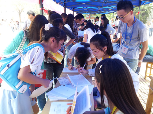 数学学院安排所有学生会成员及30名志愿者参加此次迎新工作。为了让学生省心,让家长放心,数学学院安排迎新接待人员进行一对一全程服务。每一名新生都有一名接待人员全程带领,办理入学的各种手续。在迎新工作进行之前,数学学院已经安排人员对迎新接待员进行了培训,争取为新学生营造温馨良好的氛围。
