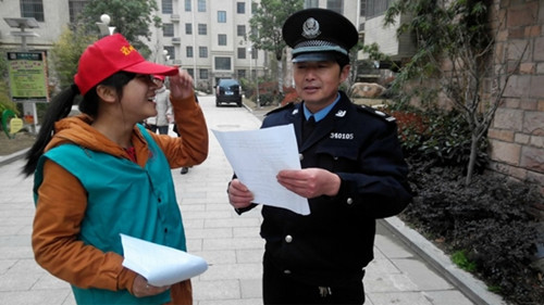 活动中,志愿者们积极向居民介绍传单上有关内容。