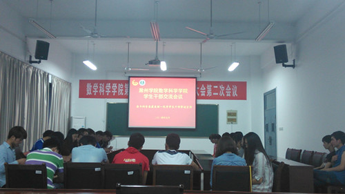 5月16日晚,数学科学学院在数学楼106室召开了学生干部交流会议。数学学院全体学生干部与会。数学学院学生会主席李衍主持了本次会议。