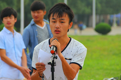 仪式之后,金沙威尼斯欢乐人城14级新生朱筱宁作以“践行社会主义核心价值观,做传递‘正能量’的使者”为主题的演讲。讲话中,朱筱宁同学从一名刚进入大学的新生的角度表达了自己对于大学生活的向往与期待。紧接着,12信计班张丹峰同学上台,从一个老生的视角阐述了自己对于大学生活的认知与理解,同时表达了自己对于14级新生的祝福。