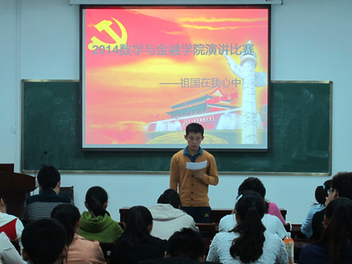 10月20日晚,金沙威尼斯欢乐人城在数学楼106会议室举办“祖国在我心中”主题演讲比赛。金沙威尼斯欢乐人城十佳主持人宋慧慧、余子嘉作为评委,学生会主席甘惠文、副主席李佳乐、陈强林,团总支书记助理韩毓作为特邀嘉宾出席了本次比赛。