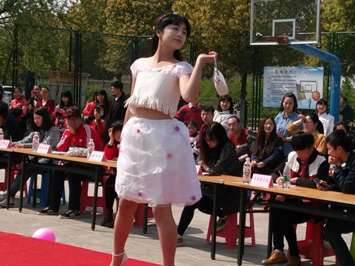 来自金沙威尼斯欢乐人城的四名同学参与了本次大赛,她们用生活中的废弃物制作时装,用废弃的报纸制作清新自然的休闲单品,巧妙的创意、大胆的设计,给在场观众带来了一场异彩纷呈的视觉盛宴。