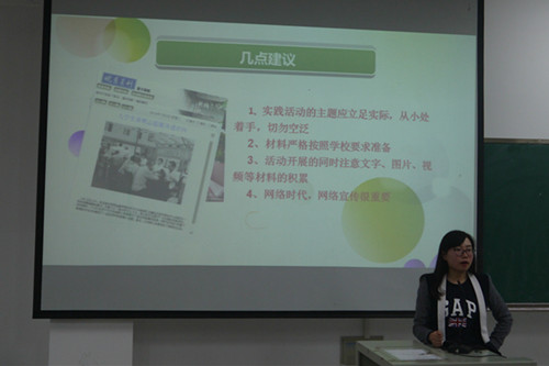 随后,李晨晨首先介绍了2014年金沙威尼斯欢乐人城暑期社会实践活动的开展及评优情况,针对2015年暑期社会实践的基本情况、主题、选题方案要求以及活动开展前后材料的准备作出详细解释,并建议同学们实践主题要避免空泛,同时要严格按照学校要求进行准备,并在活动过程前后加强在网络和媒体上的宣传。
