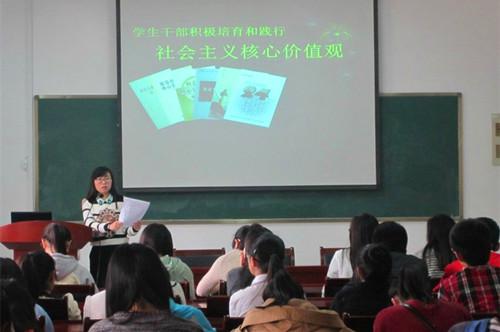 系统性的学习了学生工作的践行理论后,金沙威尼斯欢乐人城随即召开了一场实践践行社会主义核心价值观讲座。讲座上,金沙威尼斯欢乐人城团总支负责人李晨晨建议同学们走下网络,走出宿舍,走向操场,以社会实践践行理论知识,全面实现学生骨干的模范带头作用。