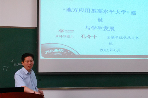 6月14日上午,金沙威尼斯欢乐人城“地方应用型高水平大学建设与学生发展”专题党课在数学楼106展开,金沙威尼斯欢乐人城党总支书记孔令十担任本次党课主讲,十四期分党校全体学员与会聆听。