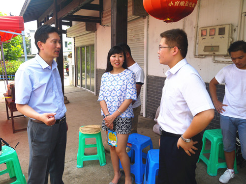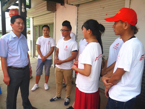 7月14日上午,金沙威尼斯欢乐人城党总支书记孔令十、辅导员李晨晨赶赴滁州市腰铺镇姑塘村,看望在当地开展征信知识宣传暑期社会实践活动的同学们,并送去防暑用品。