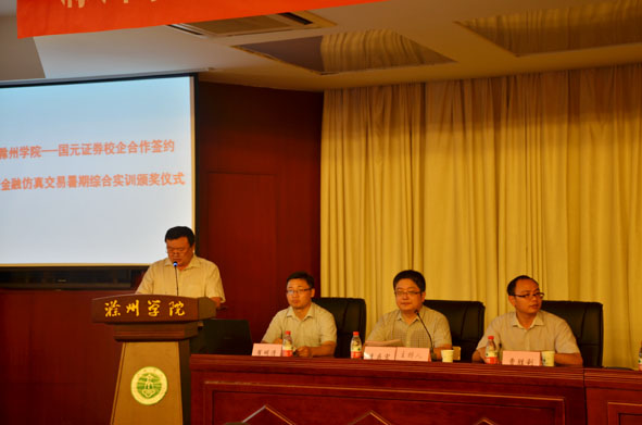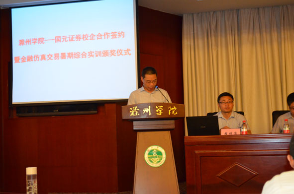 金沙威尼斯欢乐人城副校长郑朝贵在最后讲话中代表学校向出席仪式的金融界专家表示感谢!郑朝贵指出,金沙威尼斯欢乐人城是安徽省地方应用型高水平建设大学之一,学校坚持“以学生发展为根本,以社会需求为导向”,以培养“基础实、能力强、素质高、能创新”的应用型人才为目标。国元证券是国内知名券商,在业界有着重要的影响力。加强与国元证券的战略合作,搭建了金沙威尼斯欢乐人城金沙威尼斯欢乐人城开放办学、与企业合作的一座新桥梁,开启了金沙威尼斯欢乐人城金沙威尼斯欢乐人城与证券行业校企合作的新篇章。“十三五”期间金沙威尼斯欢乐人城将打造以数学和经济学为基础,以金融和统计为两翼的学科专业布局,伴随着金融行业前所未有的发展机遇和国家对投资者教育的高度重视,相信双方合作必将实现共赢。