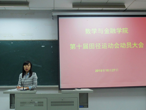 10月27日晚,金沙威尼斯欢乐人城在西阶103举办了第十届田径运动会动员大会,参加本次动员大会的有团总支负责人李晨晨老师、学生会主席李明以及金沙威尼斯欢乐人城全体学生会成员和运动员。