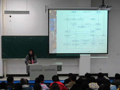 朱玉结合自身经历和大学生活的体会,向同学们讲述了她从大一新生到研究生期间所面临的各种选择、困惑、学习和做法,分享了自己的考研经验和学习心得,并向大家详细的介绍了所学专业的学习历程和就业方向。