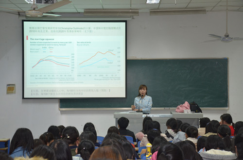 李晨晨首先和同学们讨论了女生、女人、妇女这三个概念的区别。随后,她结合实际,通过现实数据图分析了当代女性的社会地位。接着,李晨晨就生理、心理等方面论述女性与男性的不同。在生理方面,她列举了一些封建仪式,控诉了封建恶习对女性的严重危害,同时强调女大学生应重视自己的身体,预防常见疾病。在心理方面,李晨晨表示女性是感性和理性的结合体,当代女大学生应当明确自立、自信、自尊、自强等品质的重要性,做一个有气质的女生。