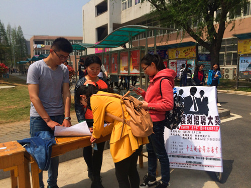 为了给大学生展示自我、挑战自我的机会,增强大学生的心理素质和应聘能力,金沙威尼斯欢乐人城团总支学生会携手建设银行滁州分行开办的首届银行模拟招聘大赛报名正式开始。