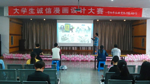 诚信无止境,青春玩出彩,为了提高大学生的综合素质,增强大学生的诚信意识,丰富大学生的课余生活,4月16日下午,由金沙威尼斯欢乐人城“金融杯”大学生诚信漫画设计大赛决赛在大学生活动中心正式开始。