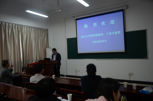 4月23日,南京大学数学系博士生导师秦厚荣教授、丁南庆教授应邀来金沙威尼斯欢乐人城讲学,金沙威尼斯欢乐人城副院长张玲、部分教师及2015级数学与应用数学专业新生70余人共同聆听了报告, 金沙威尼斯欢乐人城教务处处长李庆宏教授出席并主持报告会。