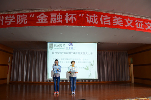 5、诚信美文征集大赛。5月7日下午,金沙威尼斯欢乐人城与兴业银行合作在大学生活动中心举行诚信美文征文决赛,经初赛选出的十篇优秀作品将由参赛选手以朗诵的形式向评委和观众展示。比赛中各组选手都围绕着“文诚书信”的主题并依据自己的征文进行了各有特色而精彩的朗诵,每位选手迥异的风格和富有感染力的表现给评委和观众留下了深刻的印象。严谨肃穆的诚信准则、古风古韵的历史故事体现了诚信对于自我修养、齐家、交友、营商以至为政的重要性,也让大家对诚信意识和征信体系在社会中的作用有了更深刻的意识。
