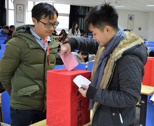 大会伊始,该院全体选民认真听取了选举颁发、投票程序以及候选人情况介绍。随后,各班班级负责人为全体选民发放选票,选民们认真填写,现场气氛庄严肃穆。最后,该院全体选民以高度负责的态度投下了自己神圣的一票。本次选举过程严格按照相关法律程序进行。