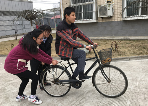 为开展好本次志愿活动,该院学生党支部成员积极与救助站工作人员对接联系,购买了零食和文具,迫不及待的想同孩子们见面。为培养孩子们的学习兴趣,学生党员们在到达救助站后,教他们练习简单的汉字、计算10以内的数学加减法,对回答正确的孩子给予表扬和鼓励。即便学生党员们有时不能完全明白残疾儿童的意思,但他们依然认真倾听孩子们的发言,并不断鼓励孩子们积极与人交流。随后,学生党员带领孩子们开展一系列的室外活动,如打篮球、骑自行车等。