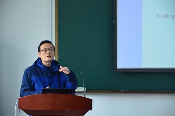 安徽省首届“青年数学奖”获得者、安徽大学概率统计系主任、博士生导师王学军副教授作了题为《Complete moment convergence for weighted sums of weakly dependent random variables and its application in nonparametric regression model》的学术报告,介绍了弱相依随机变量的权重和的完全矩的收敛问题,以及它在非参数回归模型中的应用,重点介绍了关于这个问题解决方法和模拟后的结果分析。