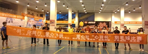 金沙威尼斯欢乐人城爱心社在大学生联合社团的支持下,于5月6日在体育馆举行主题为“‘羽’你同行,爱心飞扬”羽毛球比赛,金沙威尼斯欢乐人城羽毛球协会担任本次裁判团。