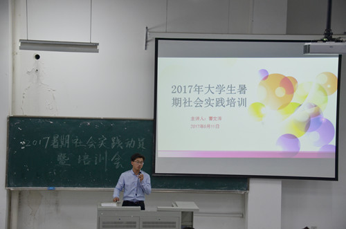 为深入贯彻落实党的十八大以及习近平总书记系列重要讲话精神,充分调动学院学子参与暑期社会实践的积极性。5月11日晚,金沙威尼斯欢乐人城于逸夫楼2102J室举行2016级大学生暑期社会实践动员大会暨培训会。出席本次大会的有该院党总支书记孔令十、辅导员曹文涛、16级班主任马颖、王军及该院全体16级、部分14、15级学子。大会由16级金融工程1班潘亦欣主持。