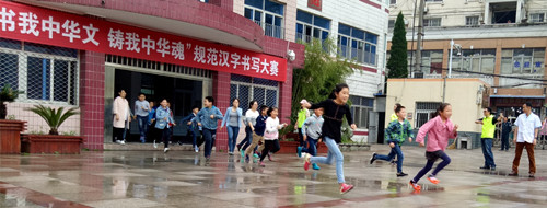 活动的第一项为防震演习。演习开始前,负责人安排志愿者维持现场秩序。演习哨声响起,小学生们井然有序的进行疏散演练,并端正的排好队,等待指示。他们的行为彰显出新一代祖国花朵的热情与未来。演习结束后,在老师的带领下,学生们认真地观看地震防范方法展板。随后,由滁州市个体医师协会成员马兵为城南小学五六年级学生演示“心肺复苏、伤口包扎”等防治伤害医务实用技巧。学生们也进行了正确的现场展示,并得到了专业人士的认可。最后,志愿者通过向行人发放“防灾减灾”与医疗类、心理健康类宣传材料,进一步宣传防灾减灾知识。