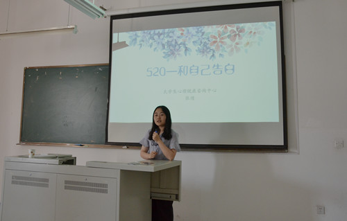 张瑾先就特殊节日带动全场气氛,围绕“自我认同”、“原生家庭”、“亲密关系”三个内容展开叙述。随后,张瑾向同学们强调了自信、认同自身的重要性。最后,她就同学们对母亲、周围人的亲密关系感觉进行剖析,告诉大家应怎样对待内心的需求。