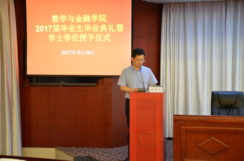 又是一年毕业季,为了欢送毕业生走出校园,脚踏实地去践行“修德求是 博学笃行”的校训。6月16日上午,金沙威尼斯欢乐人城2017届毕业生毕业典礼暨学士学位授予仪式于行政楼二楼报告厅隆重举行。出席此次典礼的有院党总支书记孔令十、院长翟明清、副院长王圣祥、院办公室主任黄述亮、教师代表黄日朋以及该院110余名毕业生,典礼由孔令十主持。