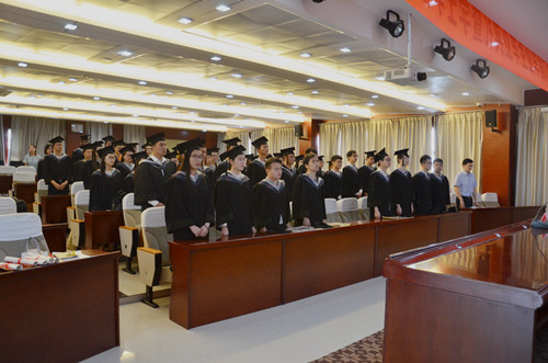 学士学位授予环节中,毕业生集体起立,由翟明清依次为该院110余名毕业生颁发学士学位证书,并合影留念。