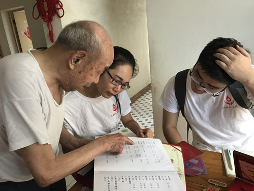 活动最后,小分队前往来安县新安镇看望老红军胡克成,在新安镇政府团委主任以及当地居民的帮助下,找到了胡克成的住址。小分队表明来意后,胡克成拿出了他大大小小的荣誉证书和勋章,并讲述了他当年的亲身作战故事,队员们认真听讲,感悟红军精神。