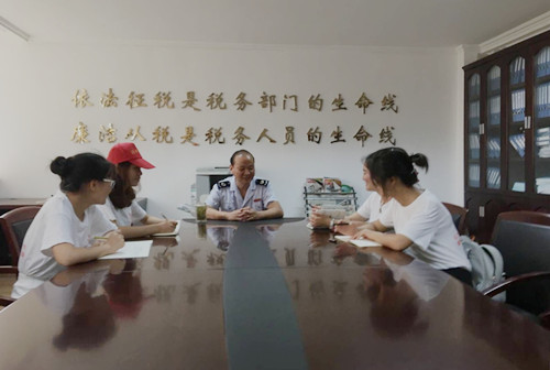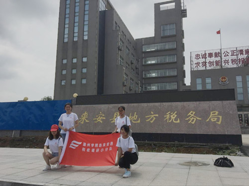 活动前期,小分队成员通过登录来安县地方税务局官网查阅相关资料,了解来安县税收情况。7月2日至3日,队员们同税务局的专业人员进行交流,并邀请负责人为队员们进行税务知识培训。