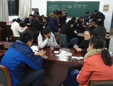 吃完热腾腾的饺子,分工会又组织了有趣的“掼蛋比赛”活动。活动现场气氛热烈,秩序井然,经过长达3.5小时的斗智斗勇,最终决出这次活动的掼蛋王。学院领导孔令十、翟明清、张玲分别为一、二、三等奖进行颁奖,虽然奖品价值不高,但体现了分工会的关怀和温暖,大家积极参与,度过了一个和谐而温馨的夜晚。