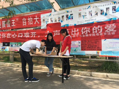 该院学生会女生部积极筹备部署,在蔚然食堂前设置摊点,开展了以“爱在心中口难开,大声说出你的爱”为主题的免费邮寄明信片活动,鼓励同学们表达出对母亲的爱。“你陪我长大,我伴你到老”、“老妈,辛苦了,我爱您”、“时光慢些吧,望岁月珍爱您”,一张张明信片传递出同学们对母亲哺育的感恩和浓浓的爱意。