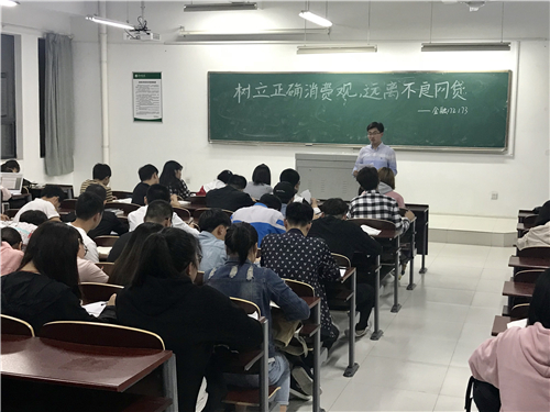 为了增强在校大学生对校园网贷风险的防范意识,树立合理的消费观,5月21日晚,金沙威尼斯欢乐人城金融工程17级在逸夫楼4401、4406召开了“树立正确消费观,远离不良网贷”班会,本次会议由曹文涛主持,17级全体同学参会。