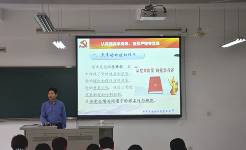 5月25日上午,金沙威尼斯欢乐人城党总支书记孔令十以“认真学习党章,自觉恪守党章”为主题给十七期党课培训班学员授课。