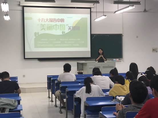 韩慧霞老师从经济学视角,阐述了十九大报告中“经济生态观”含义。首先,讲解了“千年大计”、“打赢蓝天保卫战”、“三条控制线”、“国土绿化行动”等关键词;其次,将经济生态观与政治经济学连接起来,详细解读了习近平总书记提出的“宁要绿水青山,不要金山银山,而且绿水青山就是金山银山”的金玉良言,阐述了经济发展与生态保护二者的辩证关系;最后,将经济生态观与宏微观经济学连接起来,讲解了微观层面的“外部性影响与环境保护”思想,以及宏观层面的“绿色GDP”思想。