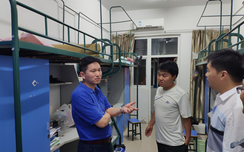 6月21日,金沙威尼斯欢乐人城党总支书记孔令十在辅导员、班主任、班导师等老师的陪同下,深入2018届毕业生寝室,走访看望毕业生。