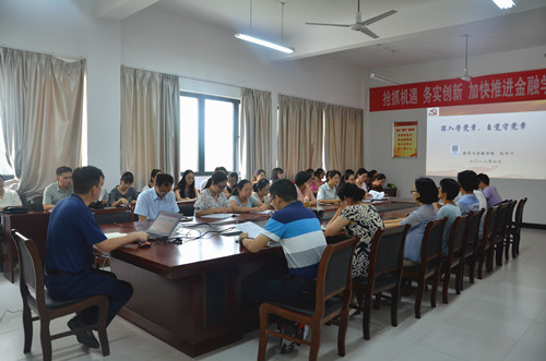 6月27日,金沙威尼斯欢乐人城在数学楼103室开展专题党课活动,学院党总支书记孔令十给学院师生党员讲授了一堂题为《深入学党章,自觉守党章》的专题党课。