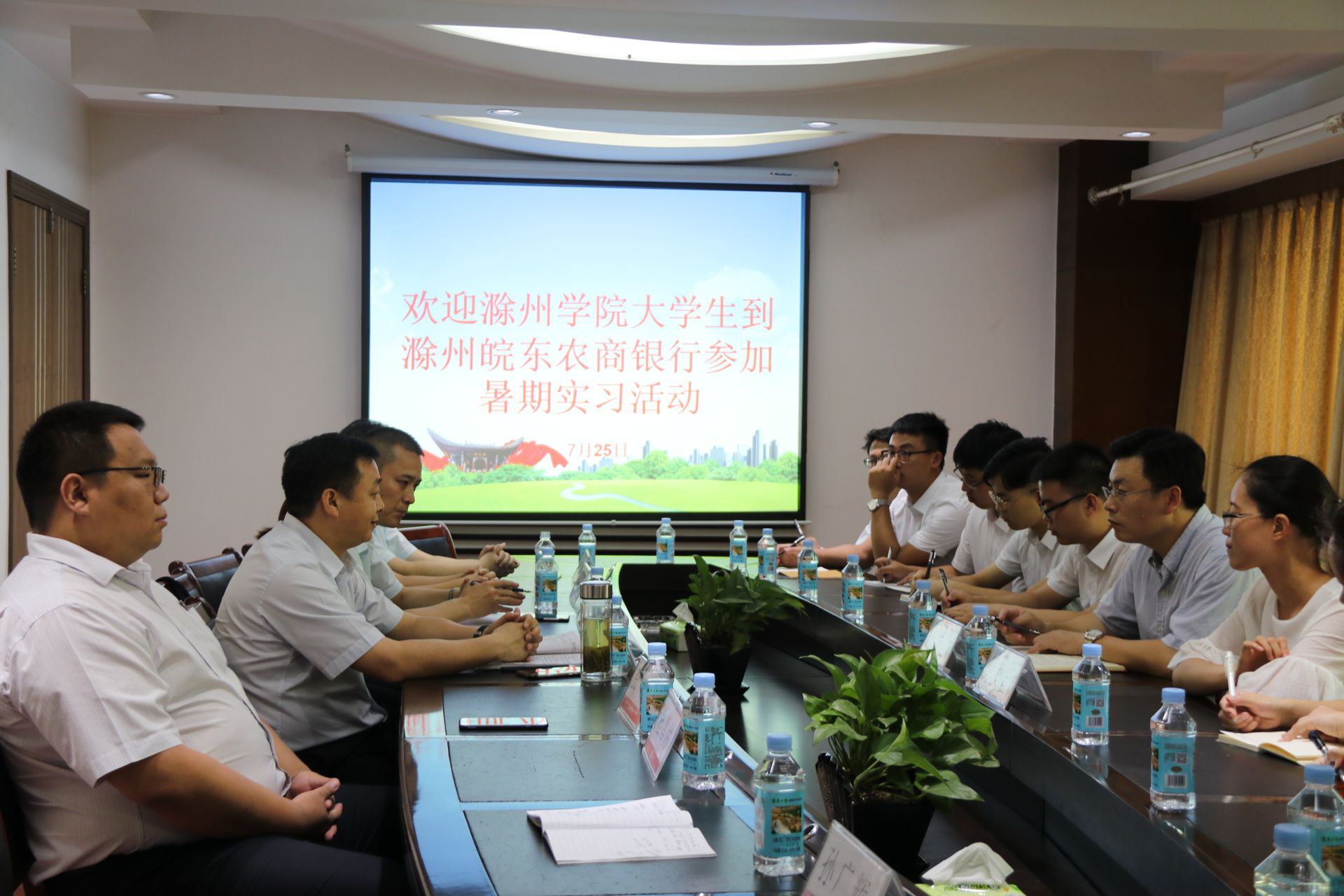 7月25日,金沙威尼斯欢乐人城副院长王圣祥、实习指导老师付云云带领该院2015级10名学生赴皖东农村商业银行实习。皖东农商行高度重视本次实习活动,并专门举办了实习欢迎会,农商行综合管理部经理及各支行行长出席了会议。