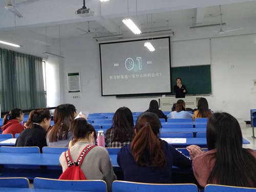 招聘会上,圆融科技公司的人事部经理和东方财富信息股份有限公司的人事部经理首先都向同学们介绍了当前的就业形势,并提出了一些就业建议给同学,为同学们的未来发展指明了方向。随后,两大公司的负责人分别向同学们介绍了公司的相关信息,分别从企业的经营理念、职业生涯前景、发展前景等方面介绍了公司信息,凸显了这两个公司在金融市场占据重要地位,也让同学们清楚地了解到两大公司的企业信息。