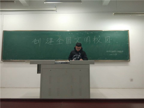 班会一开始,方龙飞向同学们强调了安全的重要意义并要求学生们在大学生活中应当要具备一定的安全防范意识。紧接着,方龙飞向同学们简要概括了本次班会的相关内容,指出创建全国文明校园的重要性,并以此要求同学们要做到如下几个方面:一是充分知晓创建标准;二是全面参与创建活动;三是以身作则,从点滴小事做起,从身边做起,做文明风尚的倡导者、践行者、引领者。最后,在同学们踊跃上台发言,交流沟通,发表感言后,方龙飞对此做出了总结并结束了本次班会。