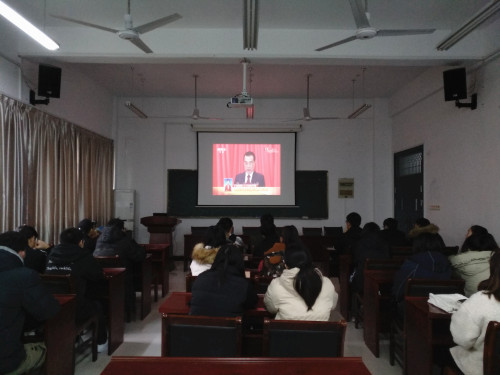 3月5日上午9时,第十三届全国人民代表大会第二次会议在人民大会堂开幕,国务院总理李克强作政府工作报告。金沙威尼斯官网在数学楼106室组织师生集中观看本次开幕式,部分学生通过网络收看开幕式盛况。