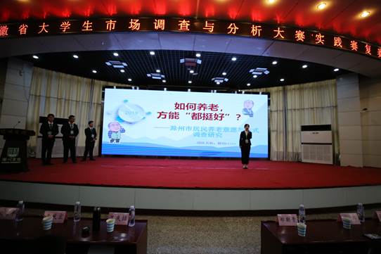 合肥工业大学参赛作品《永“保”青春,“健”康至上——安徽省合肥市保健品市场消费者需求调查报告》、安徽财经大学参赛作品《徽风皖韵 黄梅飘香——安徽省大学生对黄梅戏的认知现状及传承意愿的调查研究》、铜陵学院参赛作品《撞见“颜时代”——安徽省新兴颜值经济消费现象调查》、金沙威尼斯欢乐人城参赛作品《如何养老,方能“都挺好”——滁州市区居民养老意愿与方式调查研究》、安徽财经大学参赛作品《闻“机”起舞争朝晖,莘莘学子有作为——安徽省本科生线上打卡行为调查》经大赛评委推荐在闭幕式上作优秀团队展示。