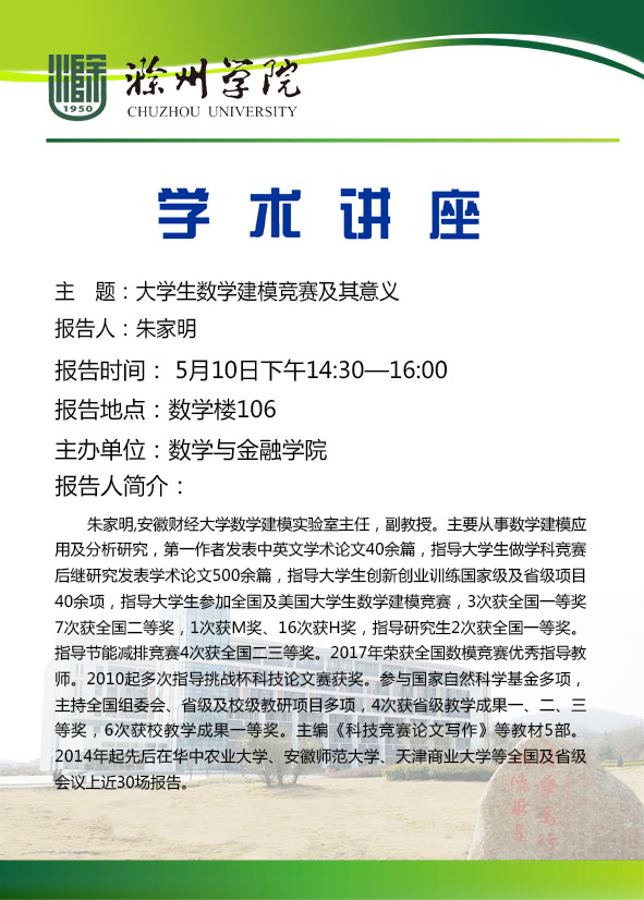 院址:安徽省滁州市会峰西路1号(会峰校区)数学楼
